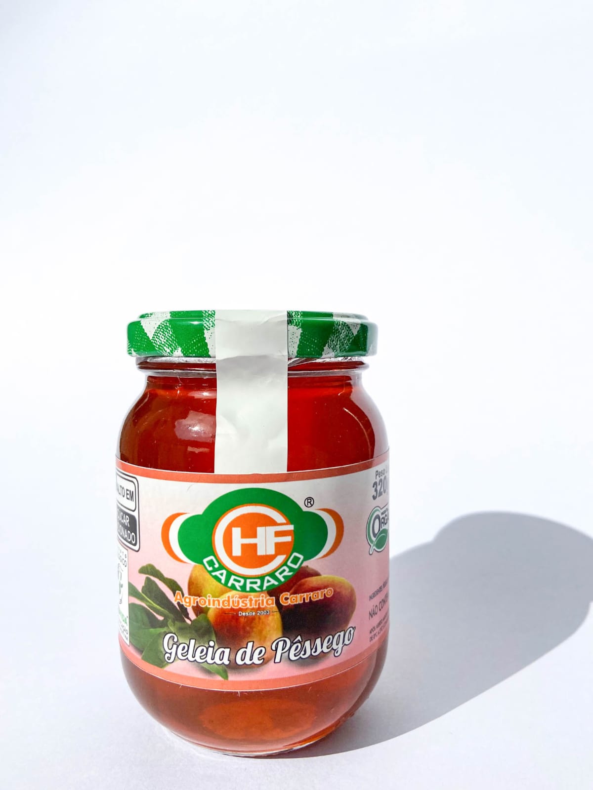 Ingredientes: Suco de pêssego, açúcar e pectina caseira orgânicos.